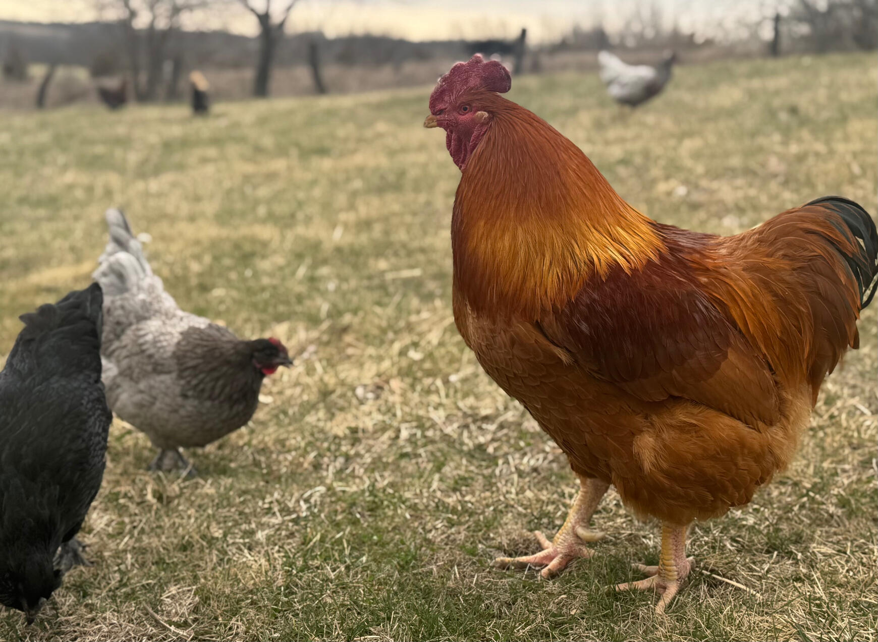 Our flock is fed organic, non-GMO, soy-free, and corn-free feed. They enjoy regular supervised free-ranging and are treated to tasty kitchen scraps daily. Visit the link below to learn about the pros and cons of free-ranging from our favorite “lunatic farmer.”